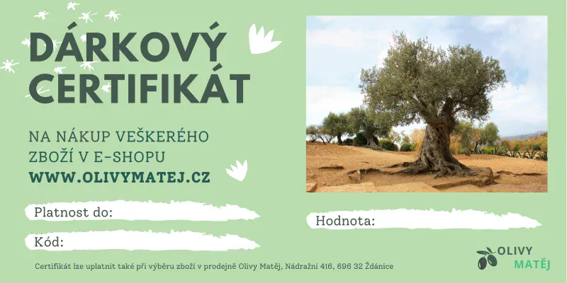 Věnujte dárkový certifikát na nákup zboží v našem e-shopu v hodnotě od 200 Kč. Certifikát Vám buď obratem zašleme na Váš e-mail a Vy si jej doma vytisknete nebo zašleme poštou. Certifikát je možné vystavit i na jiné částky dle Vašeho přání.